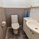 Holiday Home Rukan Taikavuosseli 12 A By Interhome har även öppen spis samt TV. I badrummet finns även en separat toalett, ett badkar och en dusch.
